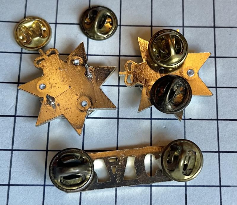 R.A.C.T. Ano aluminium staybrite pair of collar badges and a single staybrite shoulder title all on pins. VGC.