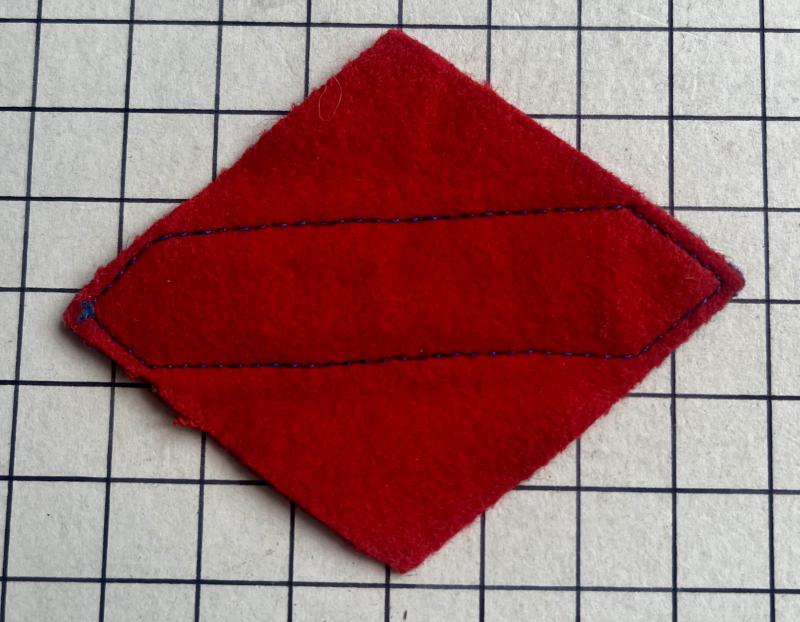 Canadian Corps diamond on which are superimposed the initials of the Royal Canadian Corps of Signals. Blue and white are Signal Corps colours. Note the use of stops between letters, the most common but not the universal pattern of RCCS patches. This badge could represent either 1st or 2nd Corps Signals as the identical badge was worn by both units at different times. When 1st Canadian Corps was created there was no thought that a second Corps would be formed so the support services were allowed to wear patches in the colours of their own corps or service. The first pattern for 1 Corps signals, approved on 22 December 1940, was a blue diamond on which were the white initials RCCS. When 2 Canadian Corps came into existence in January 1943 it adopted a blue diamond patch. Other than the plain patch for Corps HQ, the only other patch authorised was the Signals patch, which was identical to that being worn by 1 Corps Signals. Although this created obvious problems, the situation remained unresolved until after October 1943. Following enquiries from NDHQ, steps were taken to rationalise both Corps' insignia. 1st Corps Signals changed to the basic 1 Corps red diamond with superimposed a blue tablet with the RCCS letters in white. 2nd Corps retained the letters on the blue diamond, the first pattern used by 1st Corps Signals. Whatever confusion remained would have been mitigated by the departure of 1st Corps to Italy in November 1943. The use of distinctions superimposed onto formation patches to denote the arm of service to which units of a formation's corps and services belonged (ie: Signals, Engineers, Ordnance, Service, etc.) was a uniquely Canadian practice. The first such distinctions were granted at the end of 1940 and beginning of 1941 to the Ordnance Corps and the Engineers, followed by the Signals and Service Corps. As the number of these distinctions grew it appears that the general rule was for the corps' or service's initials to be superimposed onto the parent formation's basic patch in yellow (gold) letters. Notable exceptions were the use of a cherry bar to denote RCAMC units, the use of red and blue for RCE and the white on blue lettering for RCCS. In April 1942 National Defence HQ in Canada notified the overseas army that shoulder titles had been approved for corps and services units (ie: RCE, RCOC, RCASC, RCAPC, RCAMC and CProC (Provost)) and recommended that these be used in conjunction with plain formation patches. This was not taken up immediately and the switch to the officially favoured style was piecemeal across the various corps and services and formations. It is worth noting that the RCEME, formed in February 1944 (some sixteen months after the British counterpart), never wore a distinction on a formation patch. By summer of 1944 distinctions on formation patches were probably the exception rather than the rule, certainly at divisional level. Notable officially sanctioned exemptions were the RCCS white letters on blue and the Army and Corps Artillery zig-zags, all of which retained their distinctions to the end of the war. 2 Corps Signals sub-units were as follows: 2 Cdn Corps HQ Sigs (less HQ 3 (RA) Coy), 3 Cdn Tech Maint Sec, 5 Cdn Line Sec, 3 Cdn Line Maint Sec, 5 Cdn DR Sec, 6 Cdn DR Sec, 5 Cdn Operating Sec, 6 Cdn Operating Sec, 5 Cdn Medium Wireless Sec, 6 Cdn Medium Wireless Sec. 2 Corps Signals disbanded 3 July 1945.