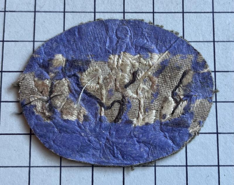 c WWII, British Range Taker R.A. It features a stylised letter "R" embroidered above a laurel wreath on an oval khaki felt backing. GC.