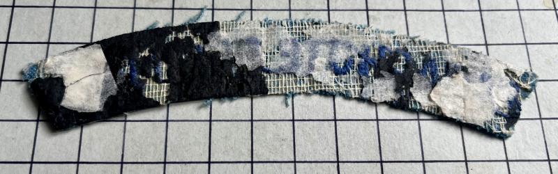 cWWII, scarcer variation of the dark blue on light blue Para Regt shoulder title. Removed from Battle Dress and album. GC.