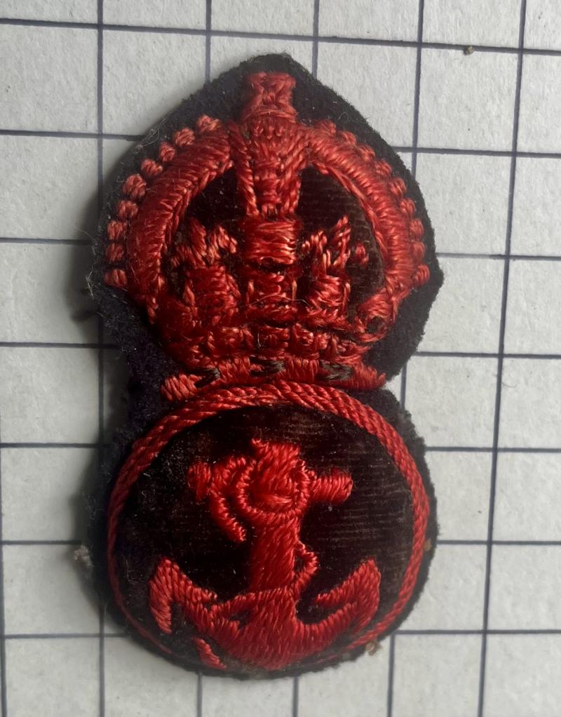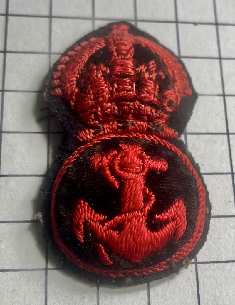 cWW2 British Period Royal Navy Naval Petty Officer (PO) Red Cloth Economy Cap Badge.
