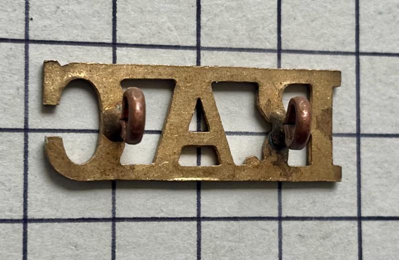R.A.C. Offr Patt brass British Army metal shoulder title on lugs. VGC.