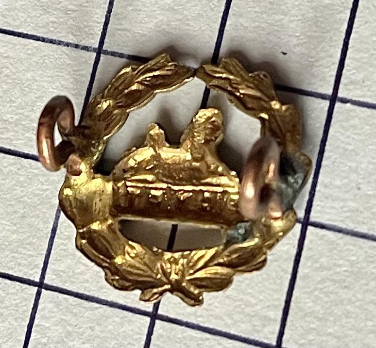 cWW1-WW2, Glosters Regimental brass back badge small standard size on lugs. VGC.