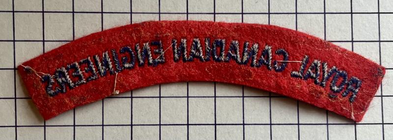 cWWII R.C.E. Corps du génie royal canadien paste back wartime shoulder title patch.