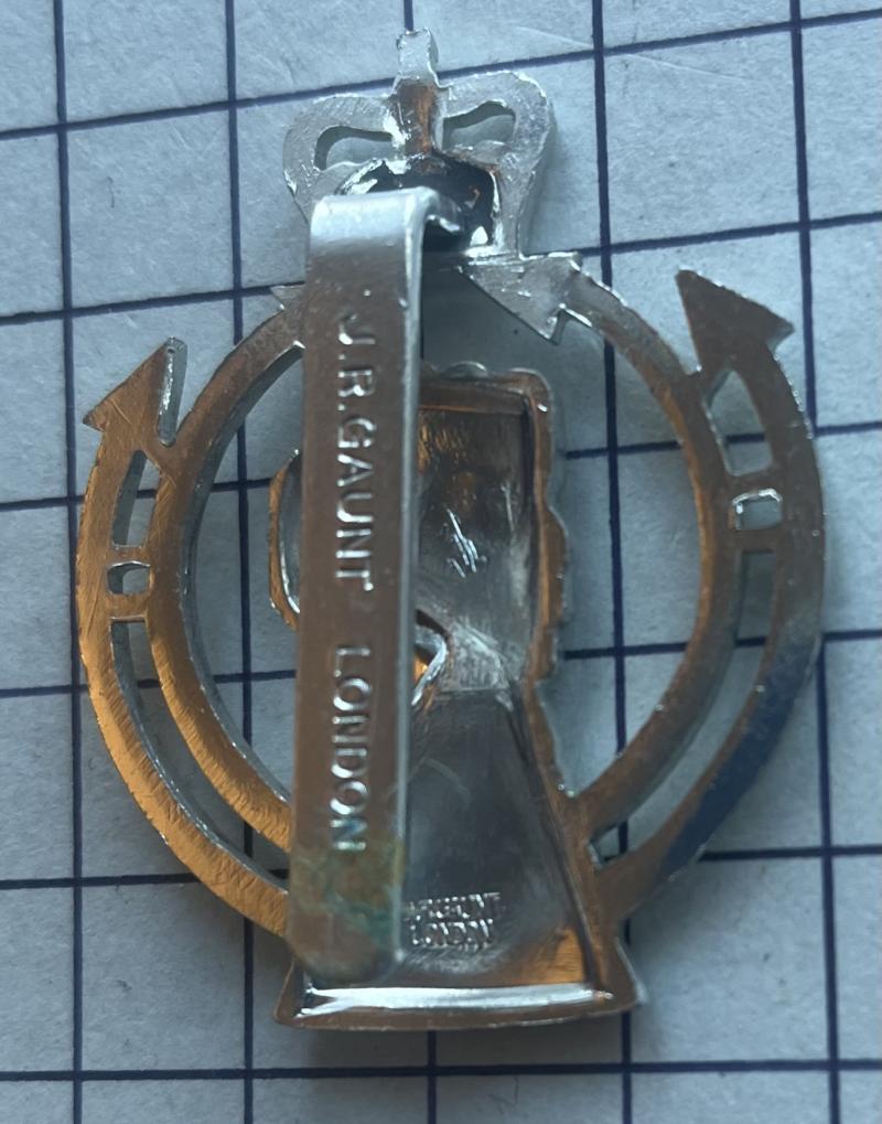 R.A.C. ano staybrite cap badge double stamped JR GAUNT LONDON on slider and bottom of fist. Great variation. VGC.