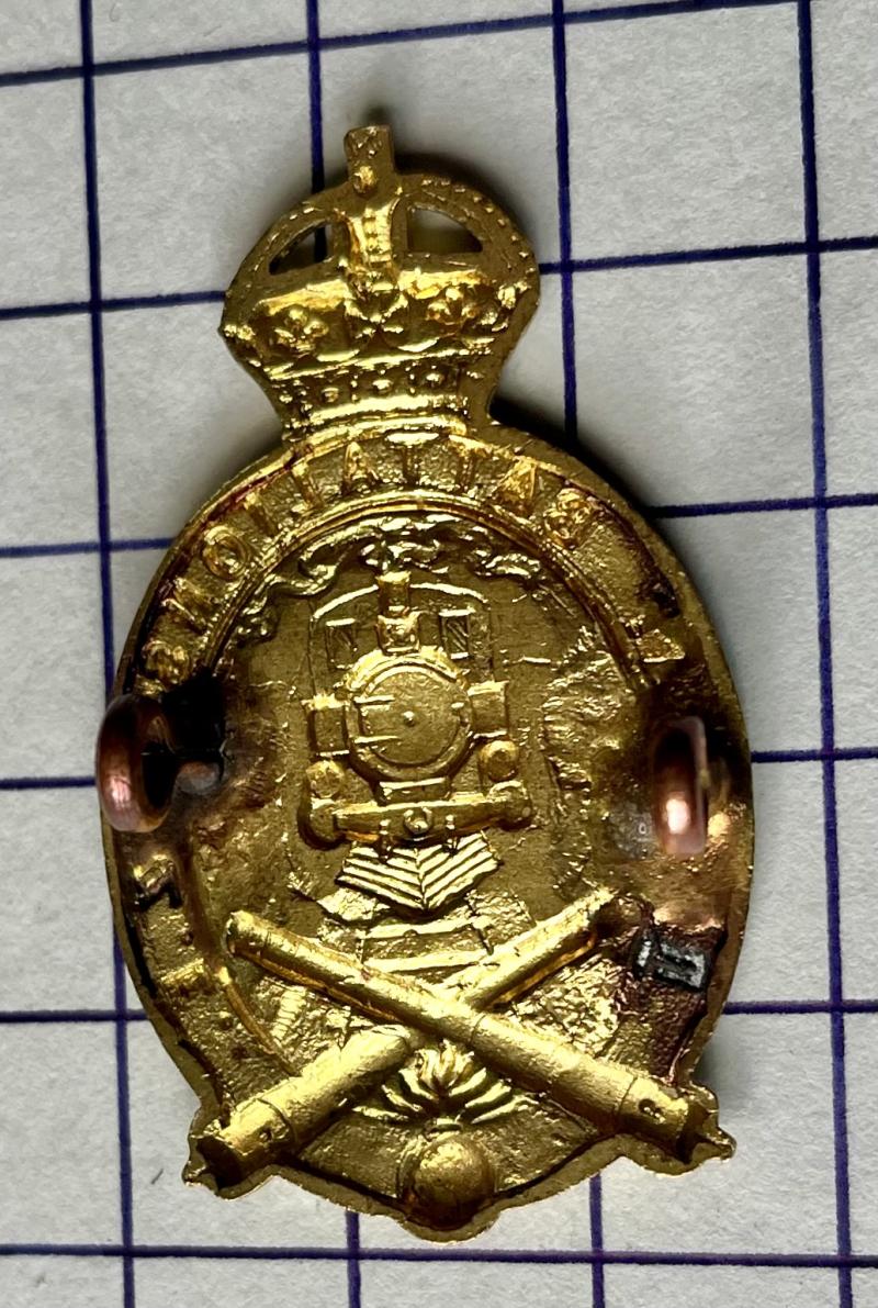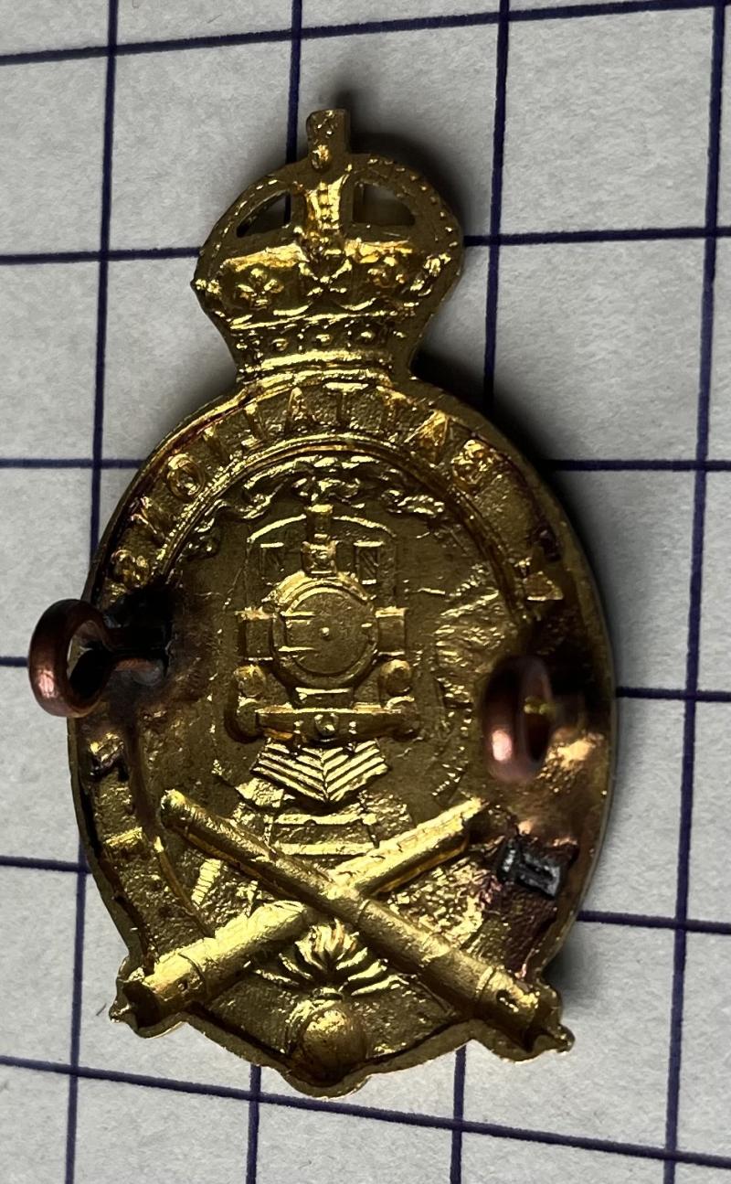 NZ Railway Regiment Bn 1913-21. Bright brass cap badge with 2 loops to reverse. Formed from the Royal Engineers in 1913. Part of the Samoa advance force in 1914. Disbanded in 1921. VGC.
