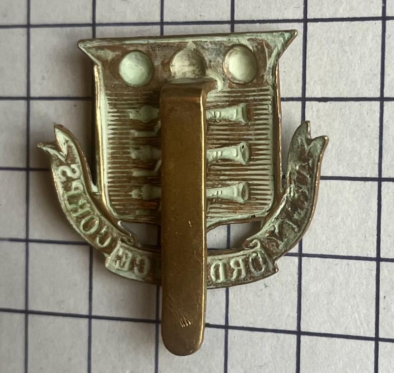 cWW1 Army Ordnance Corps (AOC) Brass Cap Badge