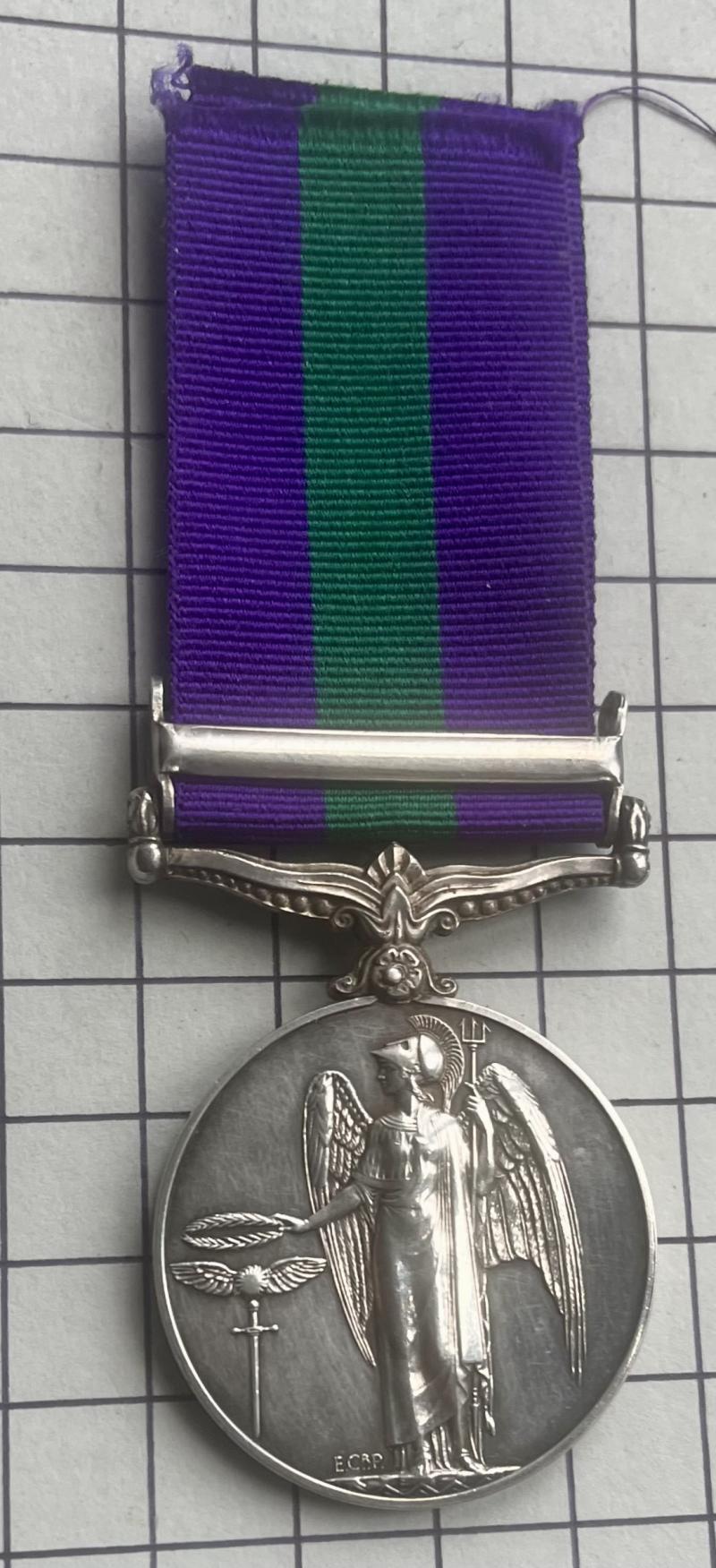 R.A. silver Palestine General Service campaign medal with bar 'Palestine 1945-48'. Correctly named with one small nick (above Regimental number '9'):