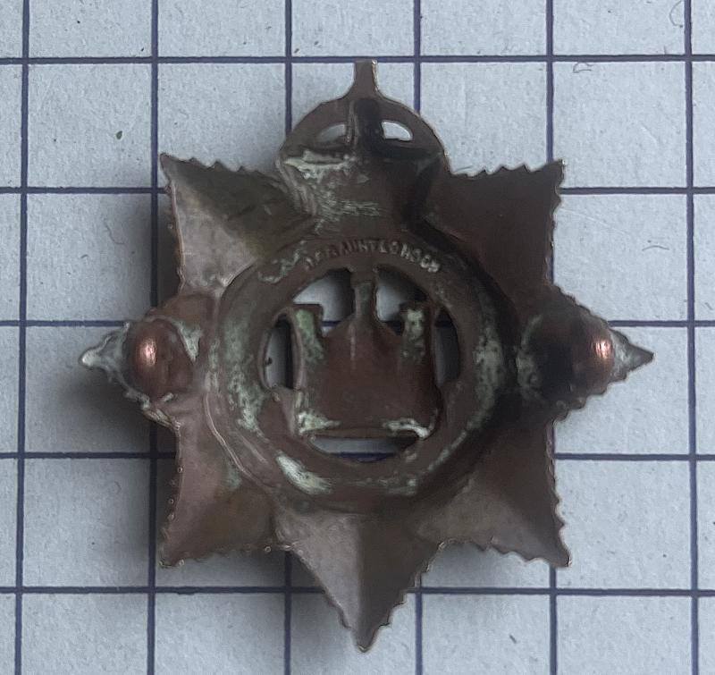 Devon Regt O.S.D. cap badge. Some loss of bronzed coating to high points, otherwise, GC. Maker marked JR GAUNT LONDON.