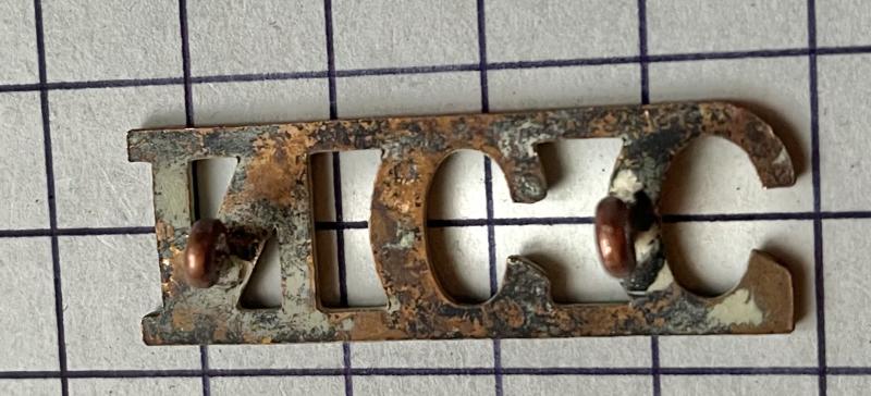 N.C.C. Brass title loops to the reverse. As worn in both WW1 and WW2 as a cap badge as well as a shoulder title. Traces of 'blackened black' paint. GC.