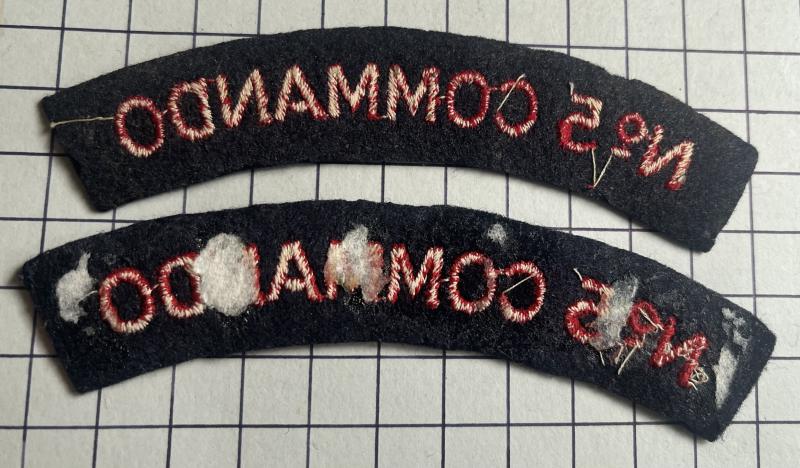 cWW2 No 5 Commando Pair of Paste Backed Cloth Shoulder Titles