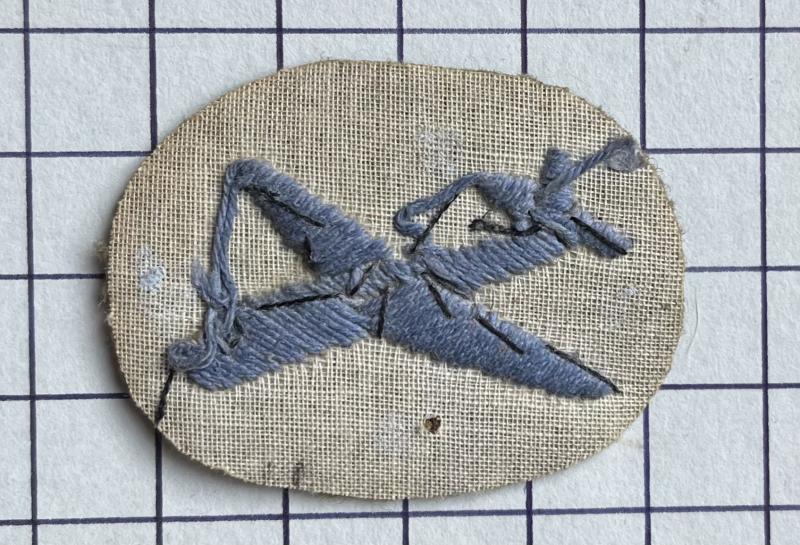 Glider-Borne Tps, Airborne Forces.Good scarce blue glider embroidered on felt khaki oval. VGC.