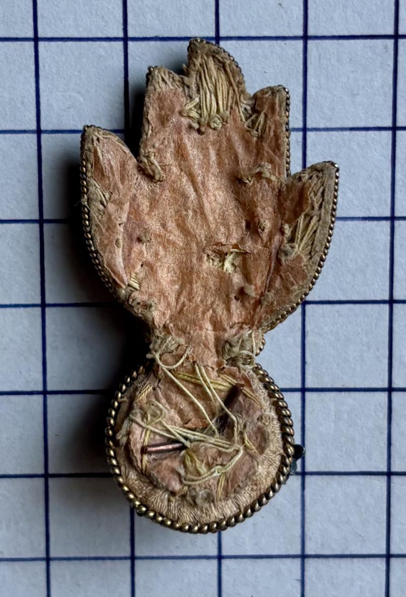 Royal Welsh Fus scarce early Officer's silvered metal and gold bullion wire embroidered collar badge. The Welsh Dragon mounted upon the ball of a fused grenade. GC.