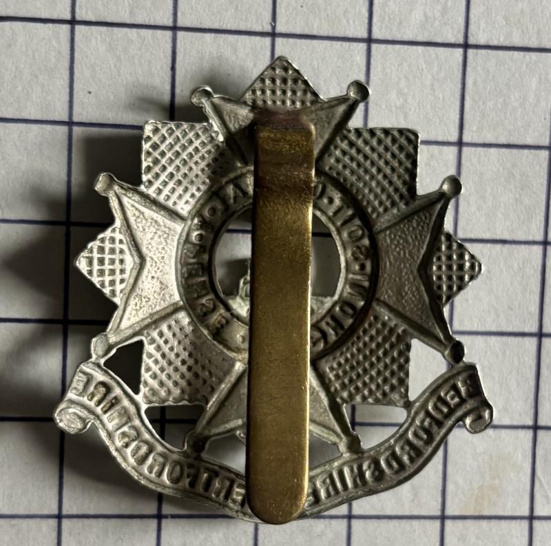 c1919 - 58 Bedfordshire & Hertfordshire Regiment White Metal Cap Badge