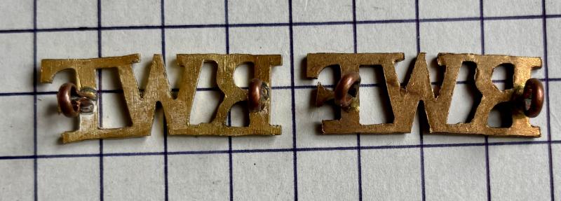 R.W.F. shoulder title badges. GC.