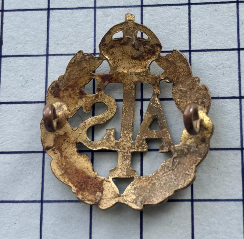 cWWII, A.T.S. Offr pattern gilt (which unfortunately has mostly worn off) cap badge on lugs.