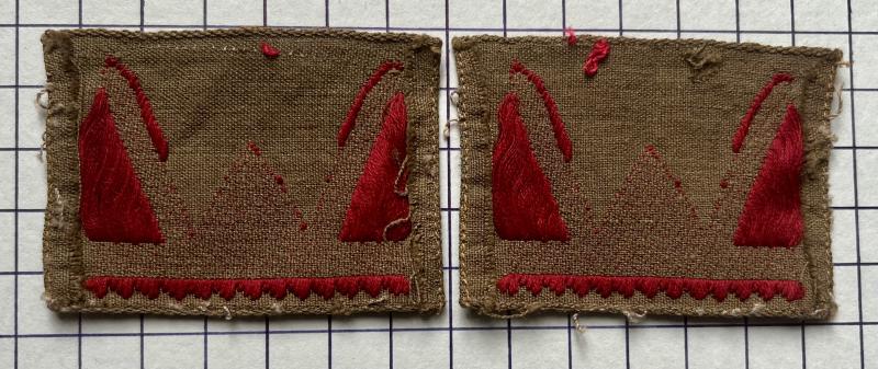 cWW2 Pair of 'Bevo' Embroidered 53rd (Welsh) Division Cloth Formation Badges