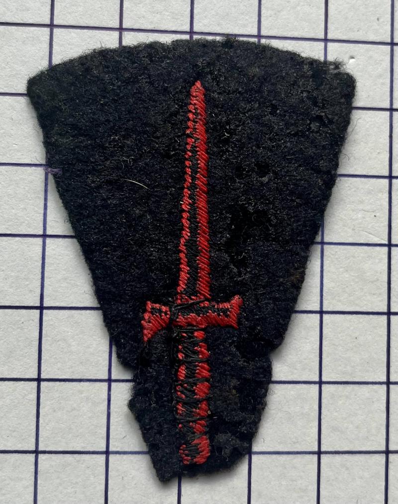 Scarce 'paste/starch backed' late cWW2 Cdo Brigade / Royal Marines Woven Cloth Arm All Arms (Army, RN) Commando Dagger.