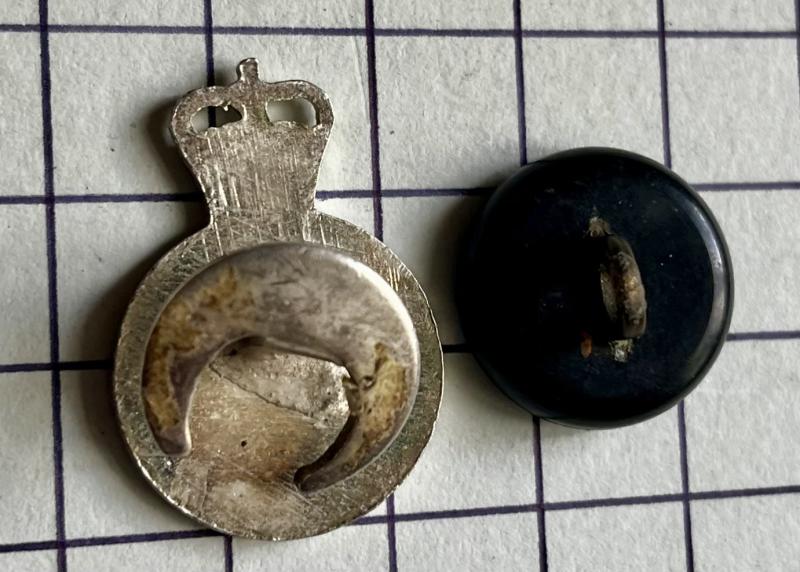 R.O.C. silvered enamel lapel badge with button hole fixing and 19mm plastic button. VGC.