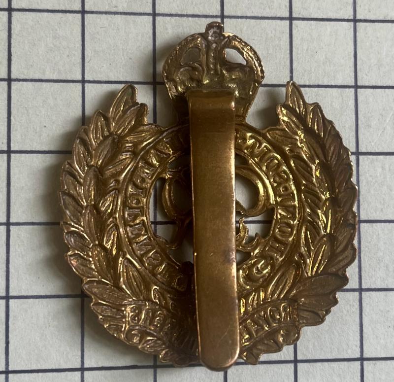 c1936 - 52 Royal Engineers (RE) GVI Brass Other Ranks Cap Badge