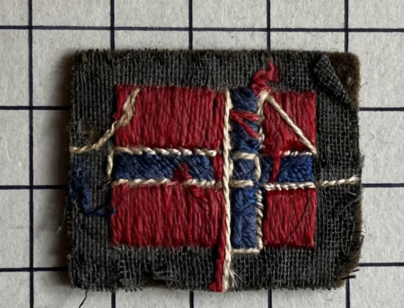 Wornr by all ranks of the Norwegain volunteers who were part of the Allied Army's in England during the war. Members of No 5 Troop, No 10 Commando (I.A.) wore the flag below the No.10 Commando on their right shoulder. Volunteers within the Royal Air Force wore a blue version of this little flag.