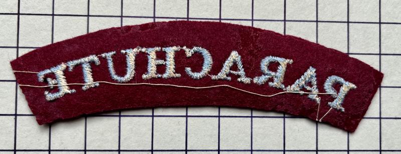 WWII Lovey, Para Regt 'paste / starch backed' unissued shoulder title for Battle Dress. Mint.