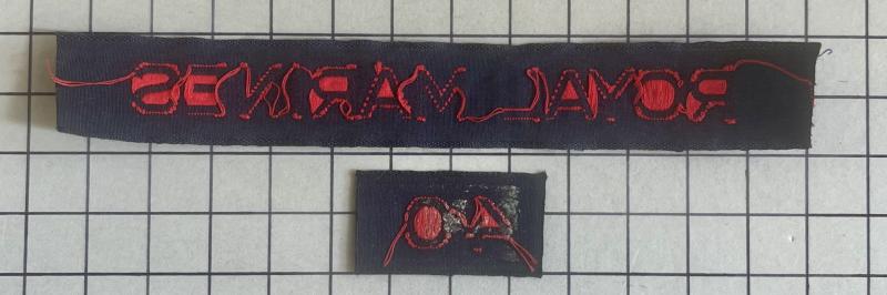 Two piece 'cash tape' 40 and separate RM for wear on the Battle Dress (BD). Missing the 'Commando'. WWII.