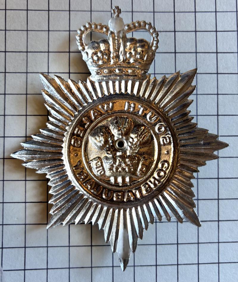 South Wales Constabulary large HP badge chromed with single screw post and Prince of Wales plume to centre. VGC.