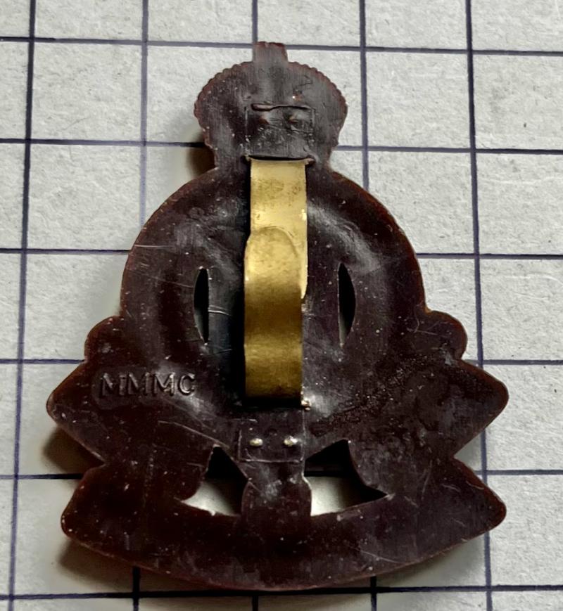 cWWII R.A.O.C. plastic cap badge rare maker 'MMMC'. VGC.