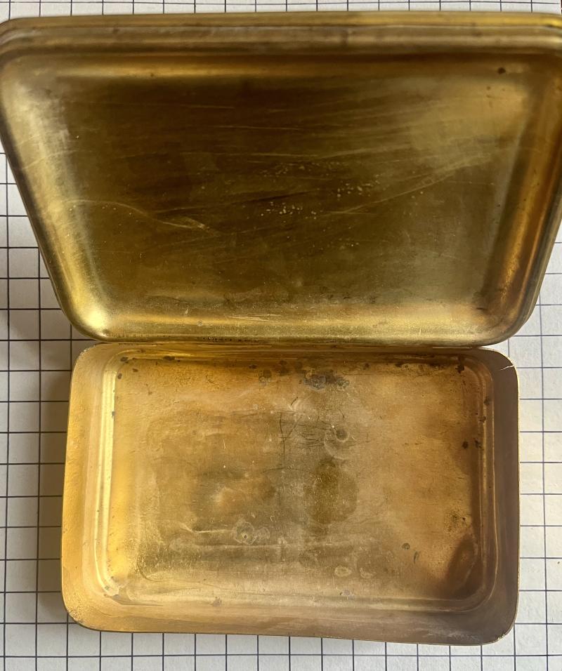 cWW1, '14 Xmas Princess Mary's Box. This is a 'type 2' version. Great condition most of original finish and displays well. However, there is a dent to bottom (could be 'pushed out'). See pics.