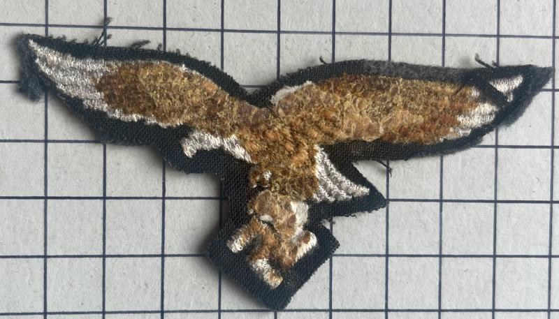 cWWII Third Reich: cloth other ranks Luftwaffe breast eagle, 2nd pattern. Some moth damage and removed from album. See pics.