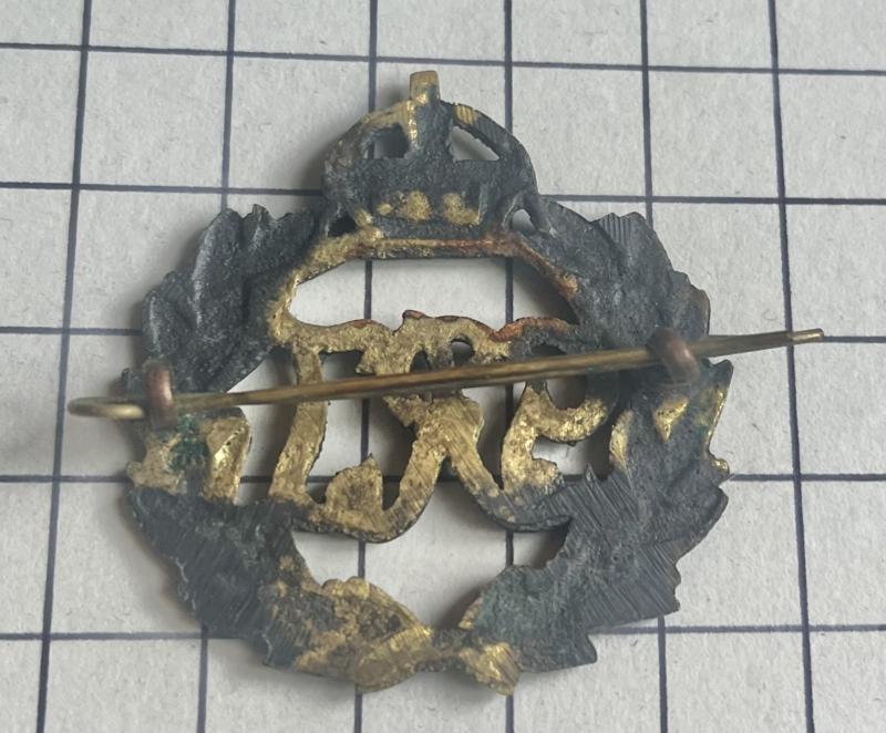 A good pre 1947 locally blackened cast example. Crowned wreath with G R I (Georgius Rex Imperator) to the centre. Two lugs to the reverse. GC.