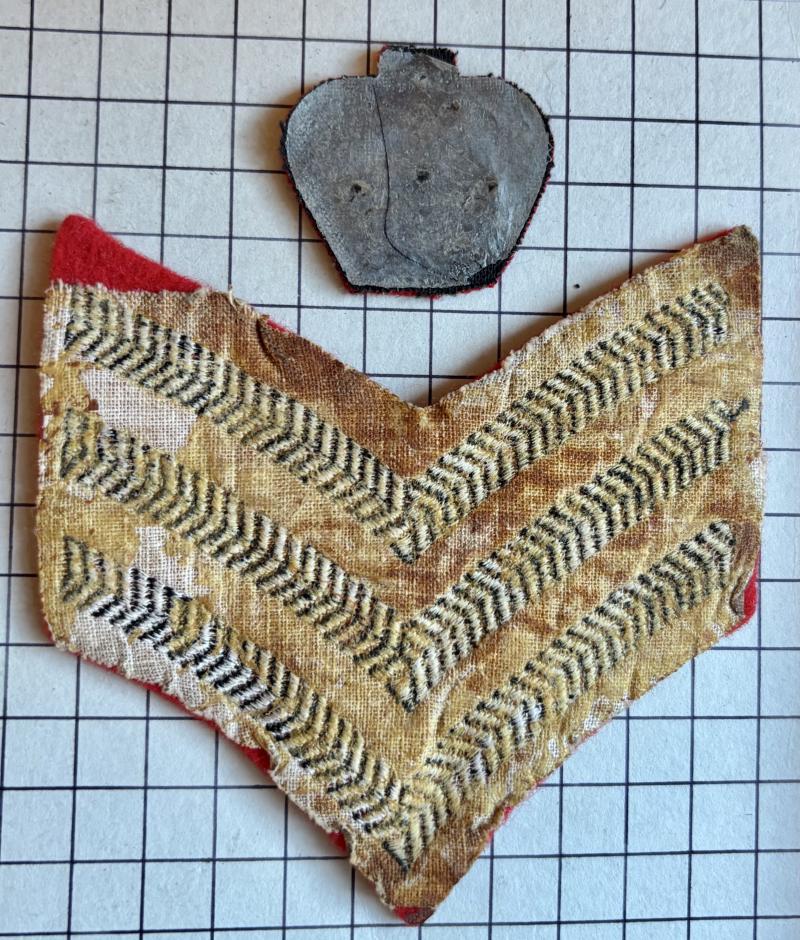 Black on scarlet rank patches CSgt Sgt Chevrons and small QC worn by: 2nd KEO Gurkhas Rifles; Bde of Gurkhas band and old Junior Leaders Regts.