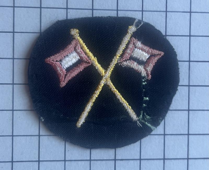 WW2 German Deutsche Naval Kriegsmarine Signals Ratings arm trade specialist patch 3rd Reich era. A good example depicting crossed flags. Slight wear & fading. GC. code 12f