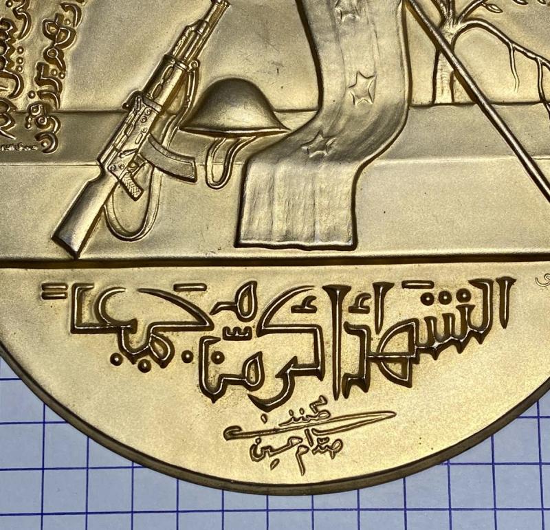 c1980s - 2003 Saddam Hussein-era Iraqi Martyr's Commemorative Plaque / Death Penny Medal