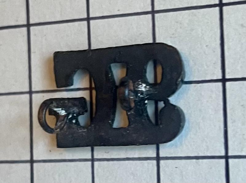 cWW2, 9th Gurkha Rifles Regimental shoulder title cast locally blackened brass '9 G' shoulder title. GC.