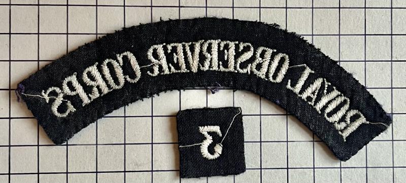 R.O.C. cloth shoulder title patch for Battle Dress and '3' region designation number for Group HQ Oxford. VGC.