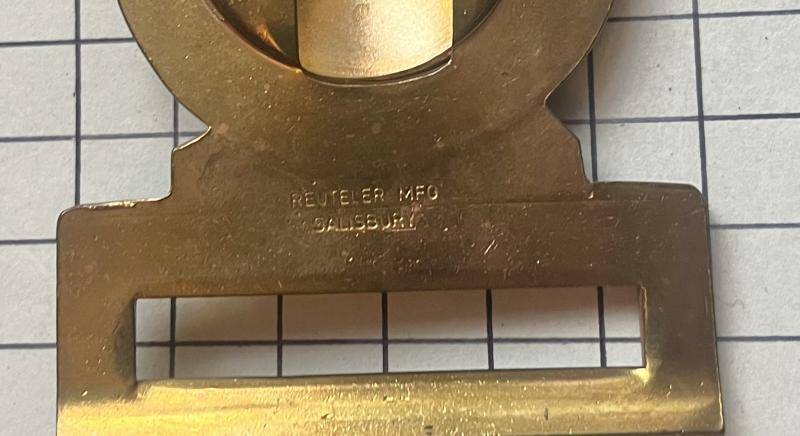 Nice brass BSAP belt buckle maker stamped 'REUTELER MFG SALISBURY'. VGC.