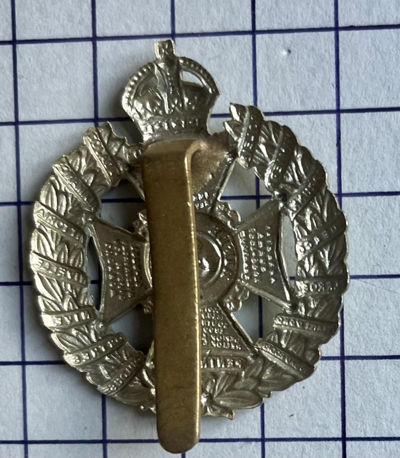 Cap badge as worn during the Great War period, which displays the very respectable 15 Peninsula War battle honour scrolls on the wreath. The inner circlet is inscribed "Rifle Brigade". The regiment was finally entitled to 16 battle honours for the Peninsular war but, "Pyrenees" was not granted until 1910 which was after the badge was designed.
