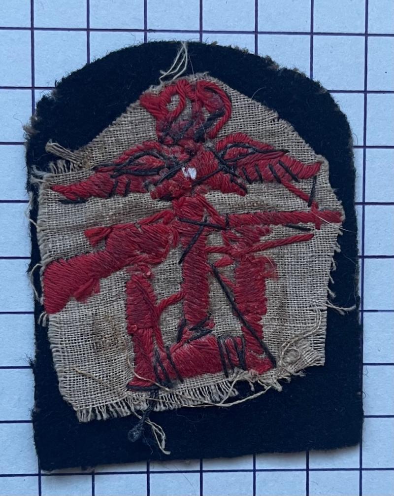 cWWII Combined Ops 'cut-down' tombstone shaped removed from Battle Dress patch.