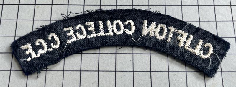Scarce Battle Dress era Clifton Bristol Gloucestershire C.C.F. Cloth shoulder title badge. Removed from BD. GC.