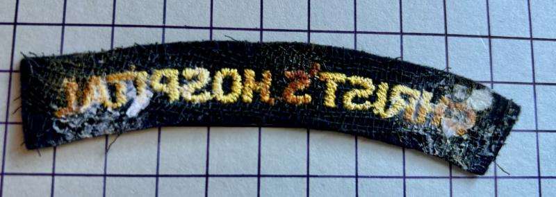Scarce, Christ's Hospital Horsham Sussex C.C.F. shoulder title for Battle Dress (BD). GC, glue marks to reverse (removed from album).