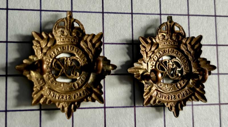 c1936-52 Good Matching Pair Royal Army Service Corps (RASC) Other Ranks Collar Badges