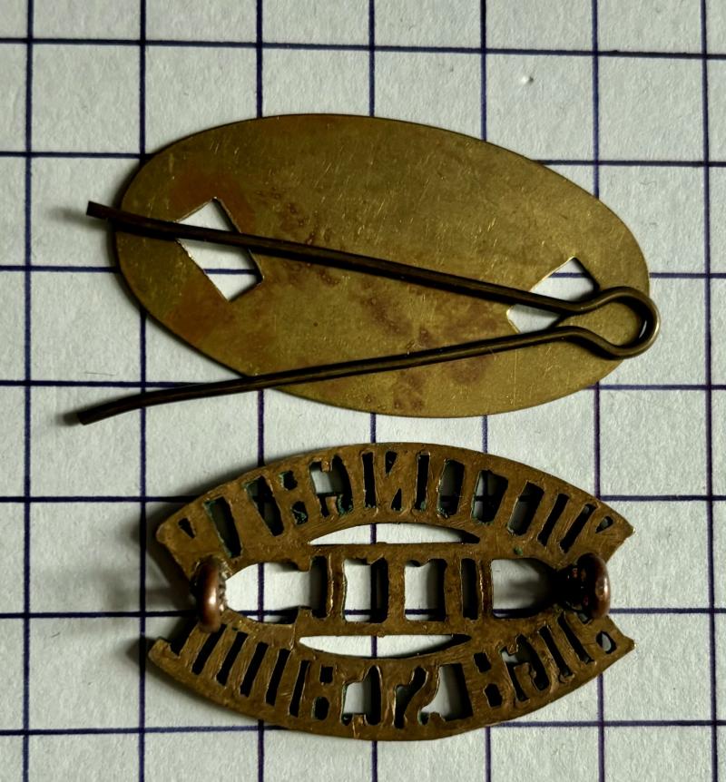 Nottingham High School O.T.C. brass shoulder title with backing plate.