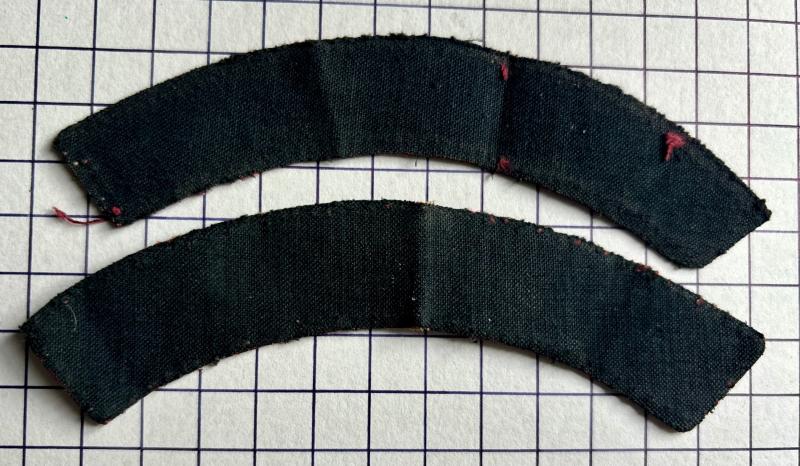 cWWII Lancs Fus Regt pr of printed titles removed from Battle Dress.