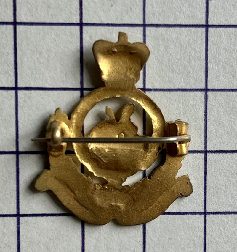 Great condition this style of S.W.B. sweetheart is attributed to Boer War c1902 period. 24th Regiment of Foot surmounted by The Queen Victoria Crown (QVC). Gilt. VGC.