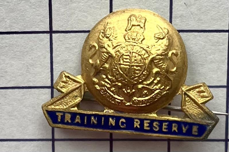 As worn by members / wive's etc, of the Volunteer Training Corps (VTC) a 'Training Reserve' lovely gilt and enamel Great War period badge. The General Service Corps / List Button to centre. VGC.