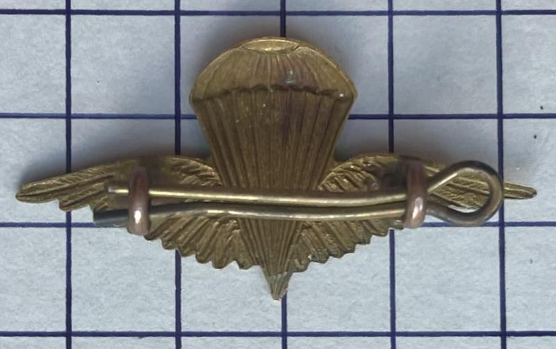 Iraqi Para Cap badge die-struck in brass scarce. Parachute with wings either side. c1960s. GC.