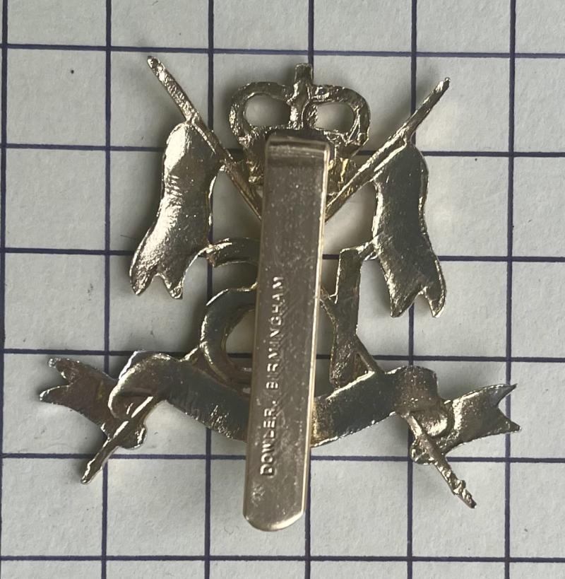16th/5th Q.R.L. anodised aluminium cap badge make marked 'DOWLER BIRMINGHAM'. VGC.