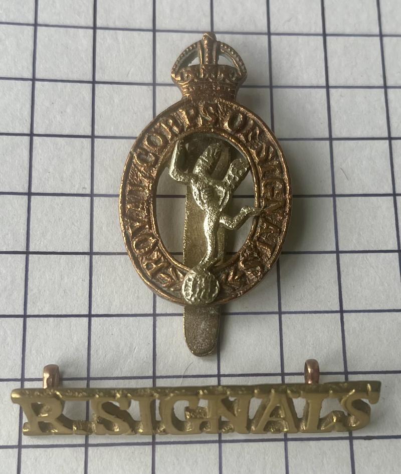 cWW2 Royal Corps of Signals (RCOS) 44th Indian Airborne Division Cast Cap Badge & Shoulder Title